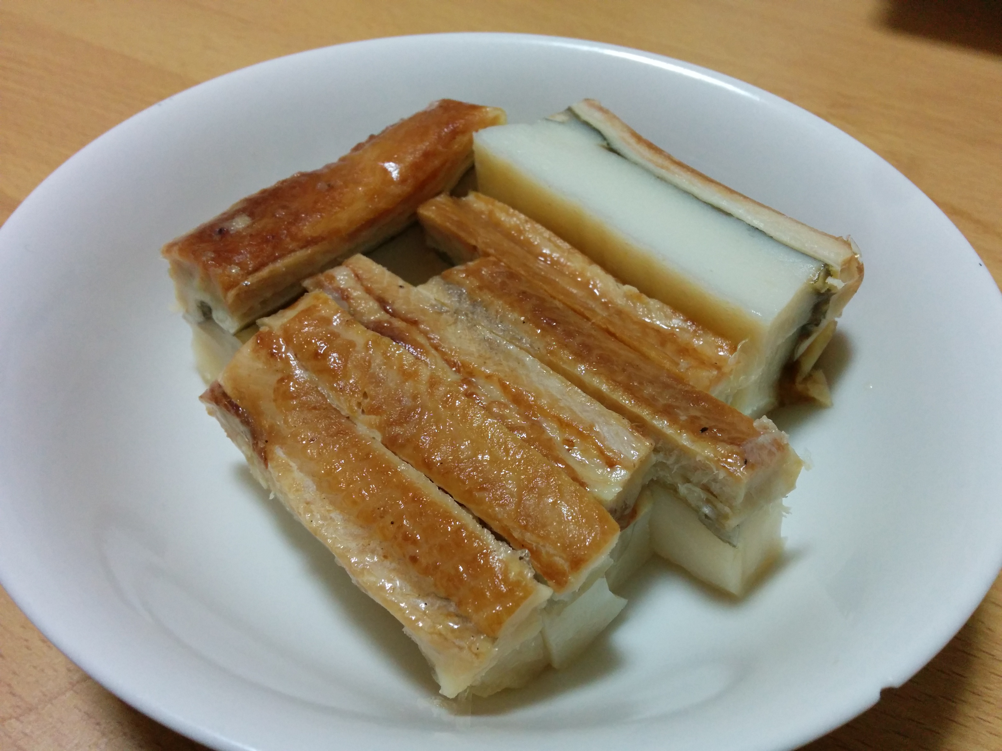 香ばしいあなごの香りが漂ってきます。 弾力のある蒲鉾とあなごが混ざりあっていい味になっています。 しょうゆなどつけなくても そのままでおいしくいただけます。